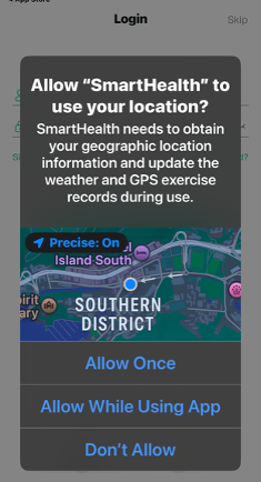 If you want to allow the SmartHealth App to track your location to enable work-out related options, please press “Allow While Using App”. This is optional and allowing “location services” is not required for the basic functionality of the SmartHealth App.