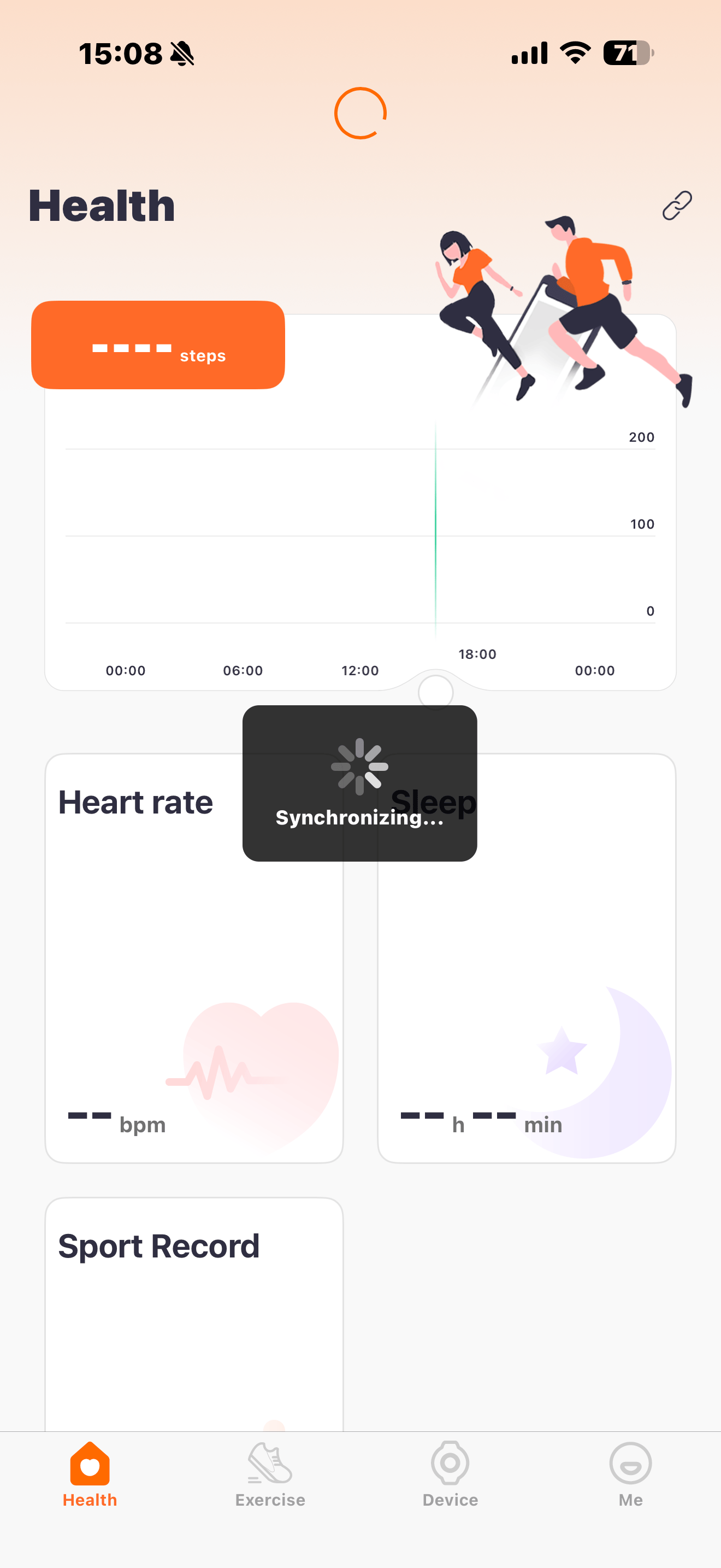 Once connected the band will syncronize with the app, which takes between 10 and 30 seconds.