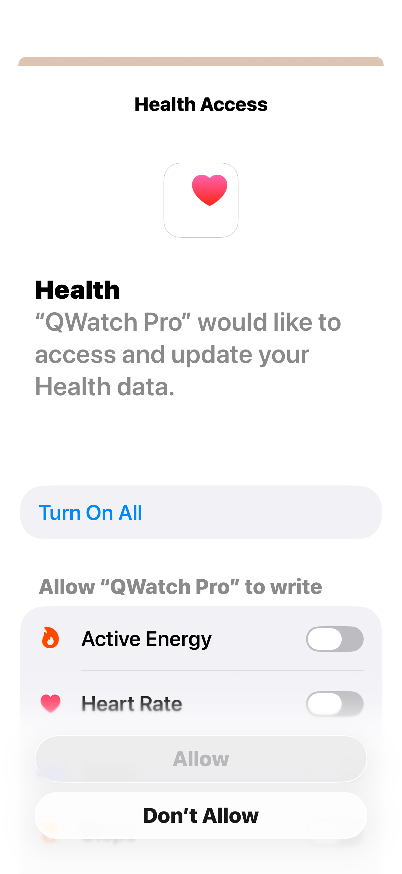 “Allow” (Health Access) is required for the app to share health data with your smartphone.