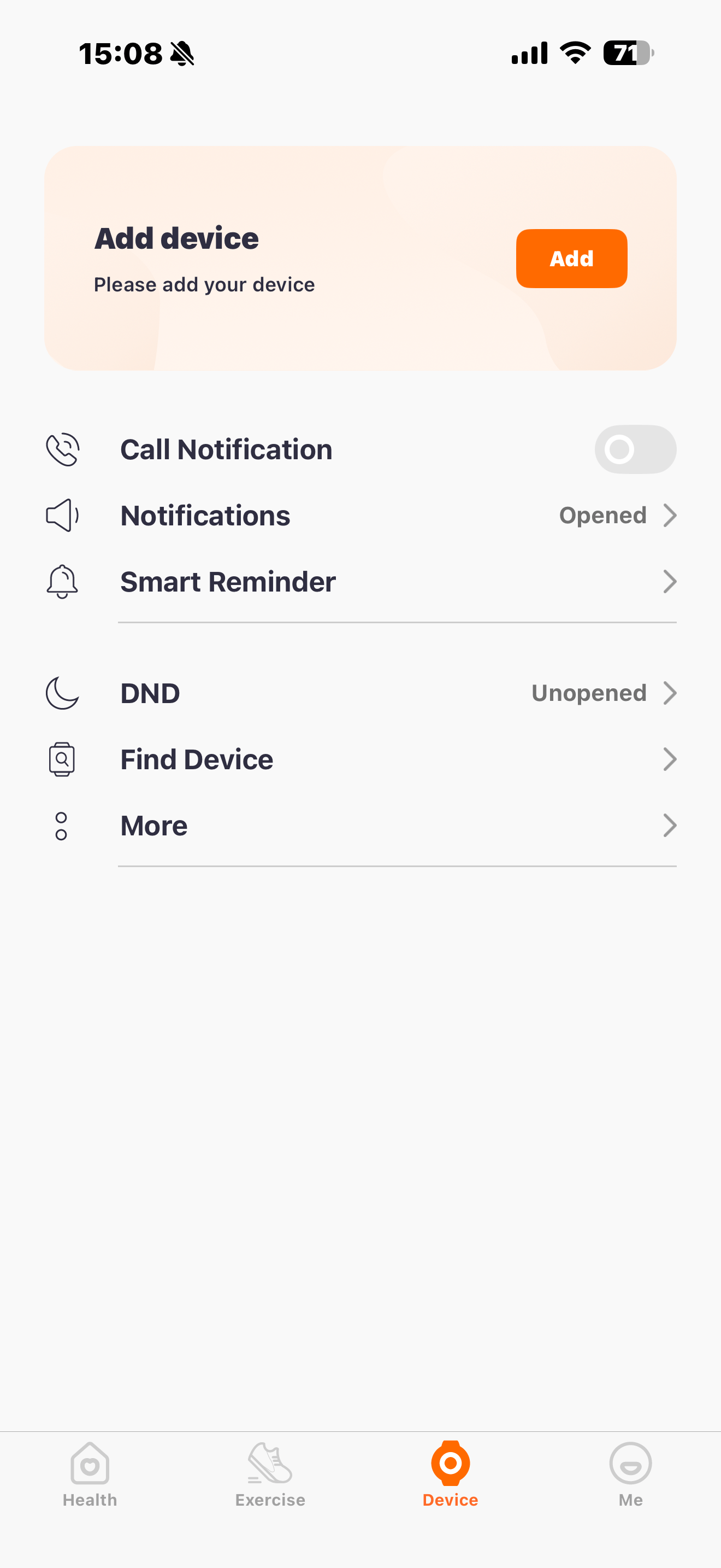 Press "Add device" to start searching fo your Zenith Bionic Band